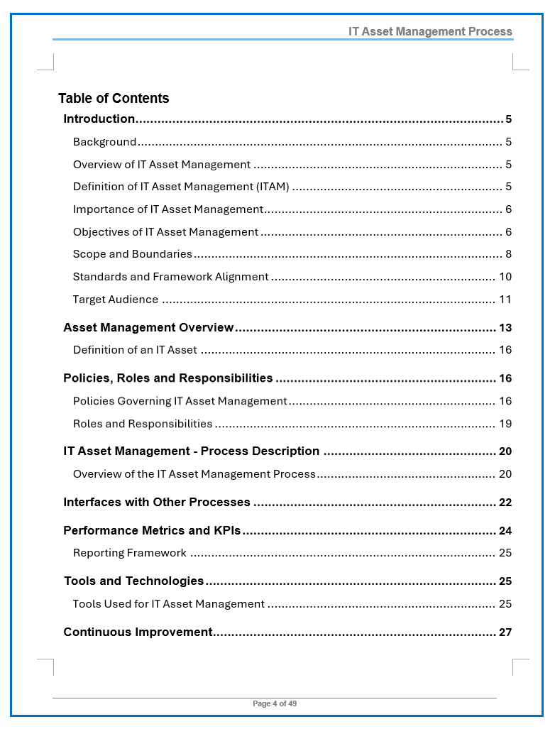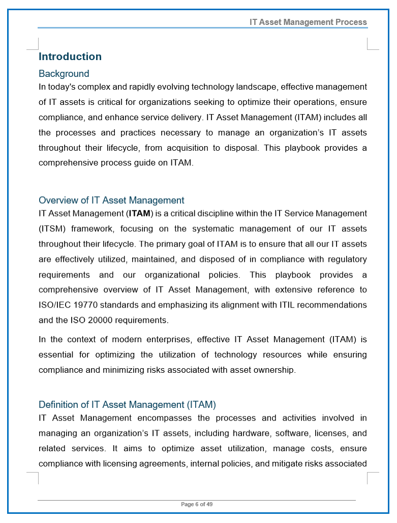 This IT Asset Management Process playbook outlines the structured steps for managing IT assets across their lifecycle. It helps organizations track, control, and govern hardware and software assets consistently.